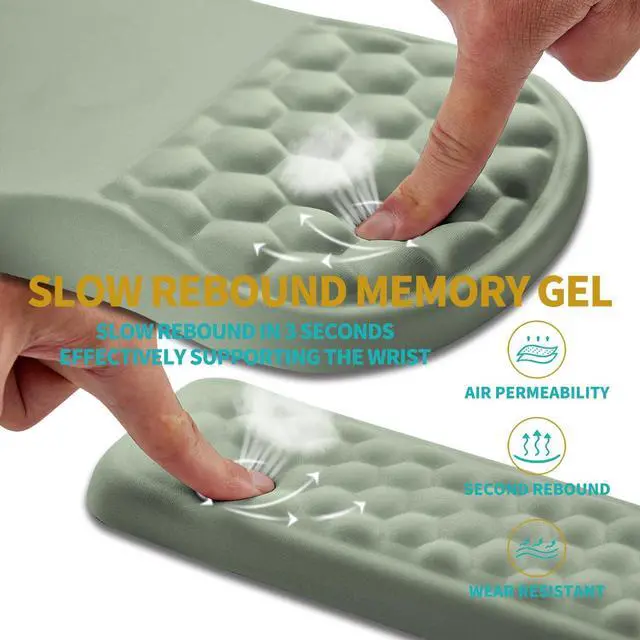 2 In 1 SetThe set includes an ergonomic mouse pad wrist support(12x8x 1.2 inch 300x200x30mm) and a wrist rest for computer keyboard(17x 3.1 x 0.8 inch 430x80x20mm). The massage bead design filled with memory gel can effectively improve carpal tunnel pain caused by long-term use of keyboard and mouse. Ergonomic Massage DesignThe innovative ergonomic slope and massage bump design perfectly support the wrist and palm. Massage bump design can effectively relieve wrist pain and fatigue improve carpal tunnel syndrome (CTS) strengthen the air circulation between wrist and mouse pad prevent sweating and keep your wrist in the most comfortable state.