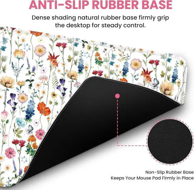 This large mouse pad ensures effortless gliding and enhanced precisionperfect for both productivity and high-performance gaming. Non-Slip Rubber Base The textured natural rubber base provides a strong grip on any surface keeping the laptop mouse pad securely in place. Whether youre working writing or gaming this mouse pad for desk ensures stability and precise mouse control. Soft Natural Rubber & Durable Stitching Made from premium natural rubber with a dense flexible foam structure this desk pad is soft elastic and odor-free for long-lasting comfort. Reinforced edge stitching prevents fraying and curling ensuring your mouse pad for desk stays neat and durable even with daily use.