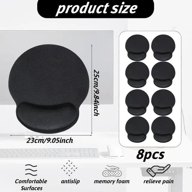 Ample Quantity for All NeedsThe package includes 8 ergonomic mouse pads with wrist rest perfect for long-term users like gamers students and programmers. These gel memory foam mouse pads ensure you have enough for daily use replacements or sharing with friends and family. The comfortable memory foam wrist rest design reduces fatigue making these mouse pads a must-have for any workspace. Ergonomic Design for Ultimate ComfortOur ergonomic mouse pad with wrist support features a gel-filled pad and ergonomic shape to conform to your wrist providing maximum comfort and reducing pain. The ergonomic wrist rest is ideal for extended computer use.