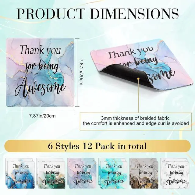 Use: you will receive 12 pieces of appreciation gifts mouse pads for laptop they come in 6 different colors 2 pieces of each color; Sufficient quantity and variety of colors to meet your different use and gift giving needs you can also share with family and friendBeautiful and