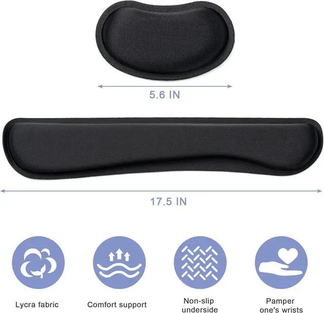 COMFORTABLE & SUPPORTIVE]: The keyboard wrist rest set surface is made from a super soft and breathable lycra material providing you with lightweight comfortable durable and skin-friendly touch ideal for long time use; The inner cushion is made of comfortable memory foam and highly resilient rubber can rebound slowly and is not easy to deform[NON-SLIP