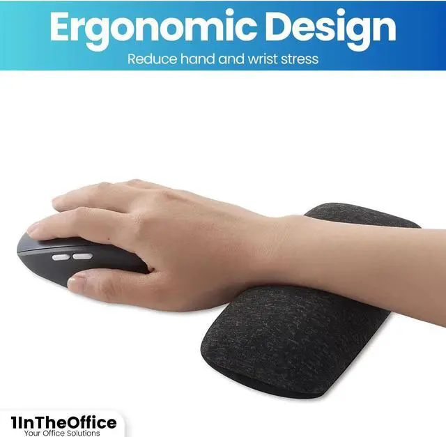Orgonomic wrist rest raises wrists to help maintain an ergonomically sound postureMade of black cloth for long-lasting durabilityNon-skid natural base prevents mat from sliding around on deskFilled with ergonomic beads that gently massage your hand and wristBacked by 1InTheOffice life time Guarantee