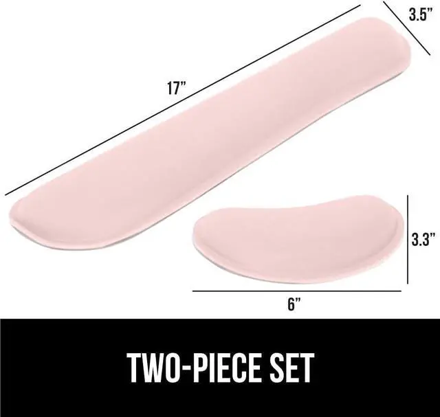 • GORILLA GRIP Silky Gel Memory Foam Wrist Rest for Computer Keyboard Mouse Ergonomic Design for Typing Pain Relief Desk Pads Support Hand Arm Mousepad Rests Stain Resistant 2 Piece Pad Light Pink