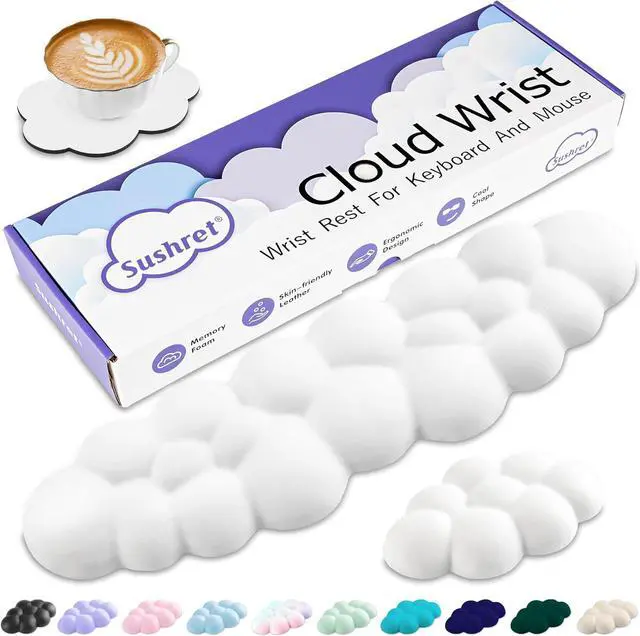 Cloud Computer Accessories: This stylish gift box contains a cloud wrist rest for keyboard a wrist rest for mouse and a cloud coaster. It is a perfect game desktop accessories gift for family friends and teachersWaterproof and