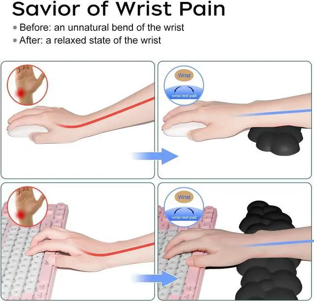 ? Durable and Waterproof Leather CoveringHigh-quality and exquisite leather covering provides comfortable touch and it dont irritate to skin it is waterproof and easy to clean so you can work efficiently and comfortably? Savior of Wrist PainThe comfortable memory foam-filled cushion and ergonomic structure conform to your wrist for maximum comfort and support it reduces wrist irritation and wrist pain helps treat and prevent carpal tunnel syndrome? High-Density Premium Memory FoamMade of high-density premium memory foam features slow bounce and excellent support extremely comfortable and durable? Cute and Aesthetic CloudIncluded keyboard wrist mouse rest and cup pad and the cloud-shaped pad is very unique&good-looking and enhances the user's experience designed for daily working or gaming? Grips Desktop FirmlyMade of soft PU safe and odorless the non-skid PU base grips the desktop firmly.