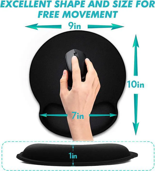 ? Ergonomic Mouse Pad The soft memory foam-filled cushion conforms to your wrist for maximum comfort and support. It reduces wrist irritation and wrist pain which is very helpful for those who need to type and click for a long time. Keeps your waist in a neutral position for ergonomic comfort. Great for gaming and working!? Comfortable and Eco-friendly MaterialsThe super-smooth Microfiber surface provides the mouse with free movement and accurate positioning. The unique SBR waterproof lining can prevent damage from spilled liquid and its easy for daily cleaning. Slow-rebound memory foam provides comfortable and elastic support to the wrists.