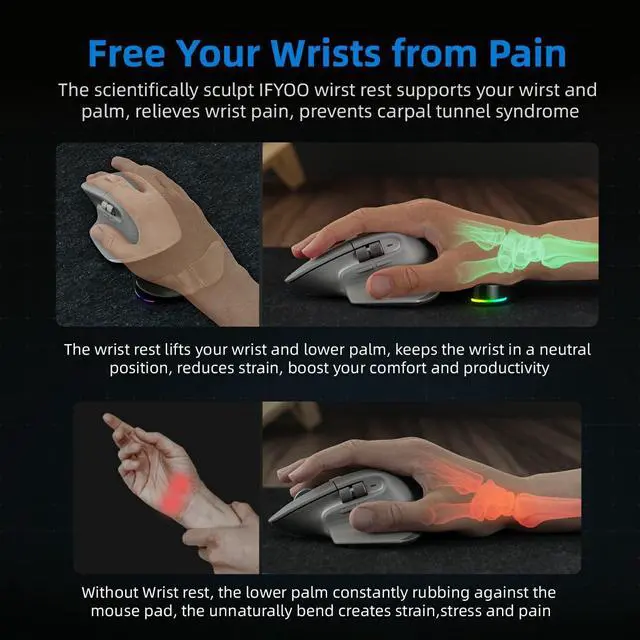 Wrists: Masterfully sculpted IFYOO HornsX1 RGB Gliding Plam Rest by experts it elevate your lower palm for about 1 cm keep your palm wrist and arm in a nature postion. Reduce wrist stress and pain and help prevent carpal tunnel syndrome. The perfect companion for long-time office workers and gamers.