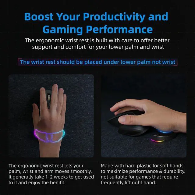 Build for Performance: Our Wrist rest is made of Our hard plastic forged for performance cradles soft hands with comfort and glides effortlessly across your desk boosting your game to new heights.