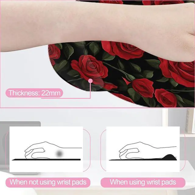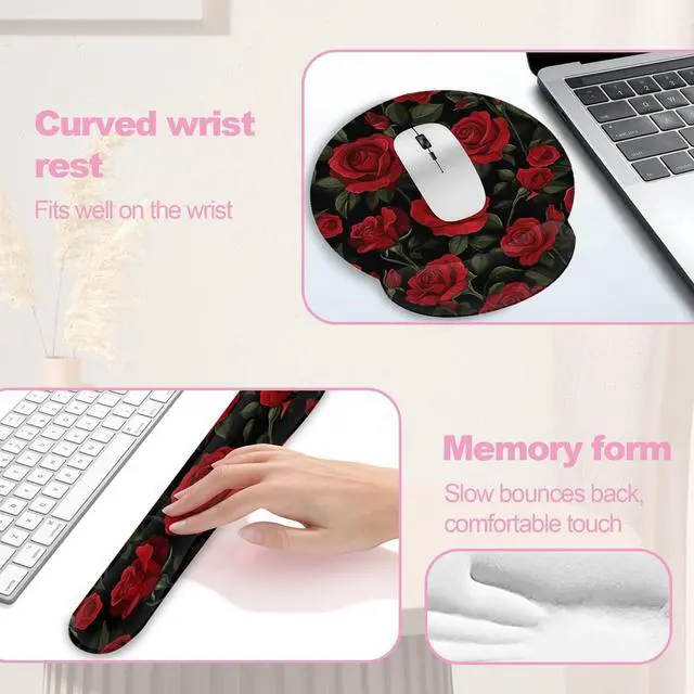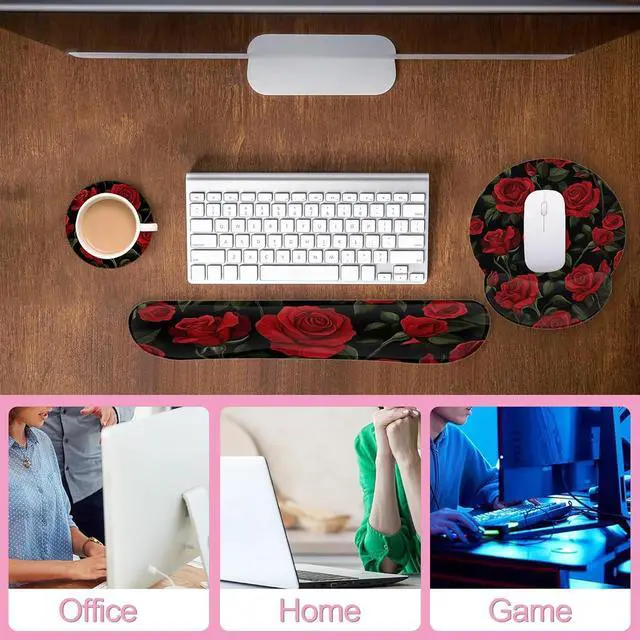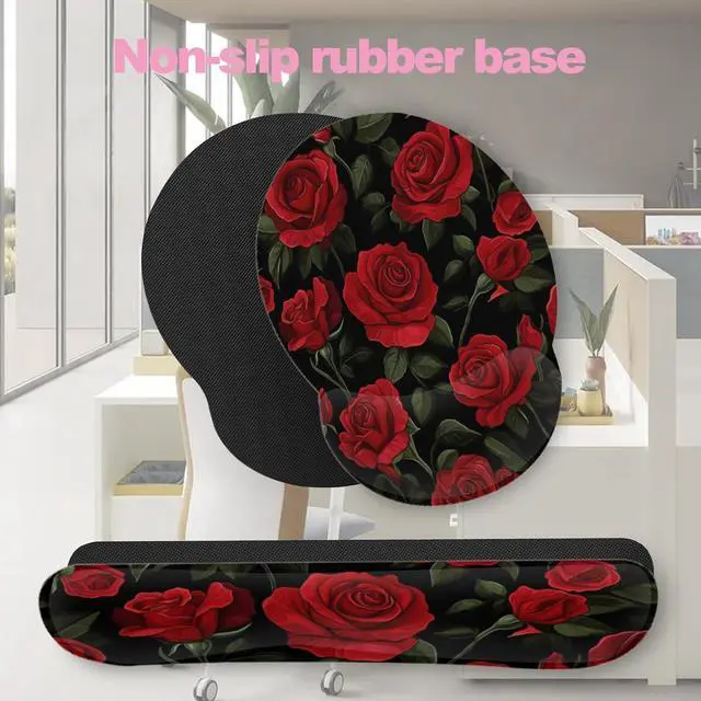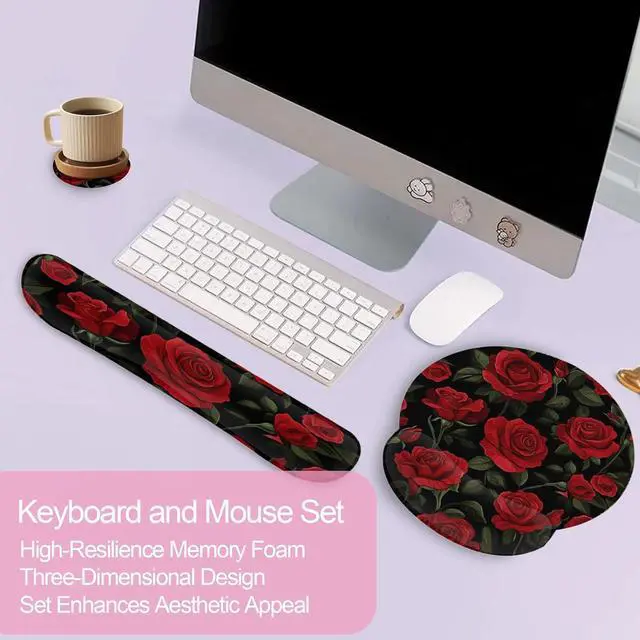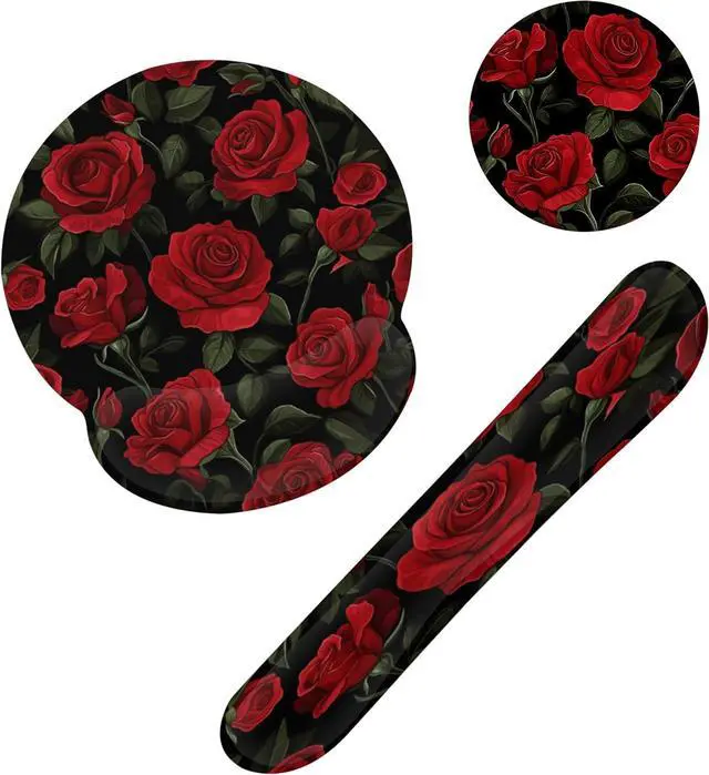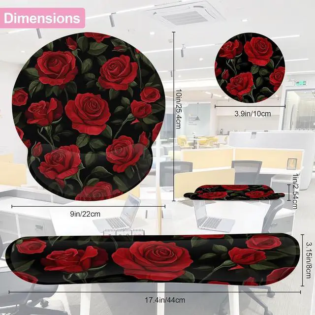 Ergonomic Design: This Vintage Red Rose mouse pad set features an ergonomic design that conforms to the wrist providing a comfortable feel and effective support to help prevent repetitive strain injuries. Its angled design keeps the wrist in a neutral position avoiding excessive bending. This allows the wrist to maintain a natural and comfortable posture.