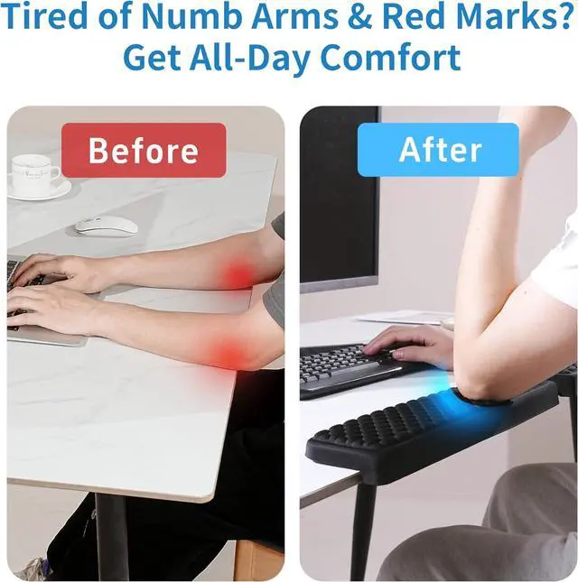 Ergonomic L-Shaped Elbow Pad: The L-shaped design snugly wraps around desk edges to provide comfortable arm and elbow support reducing pressure and discomfort from prolonged contact while effectively relieving painComfortable