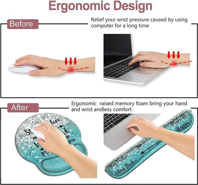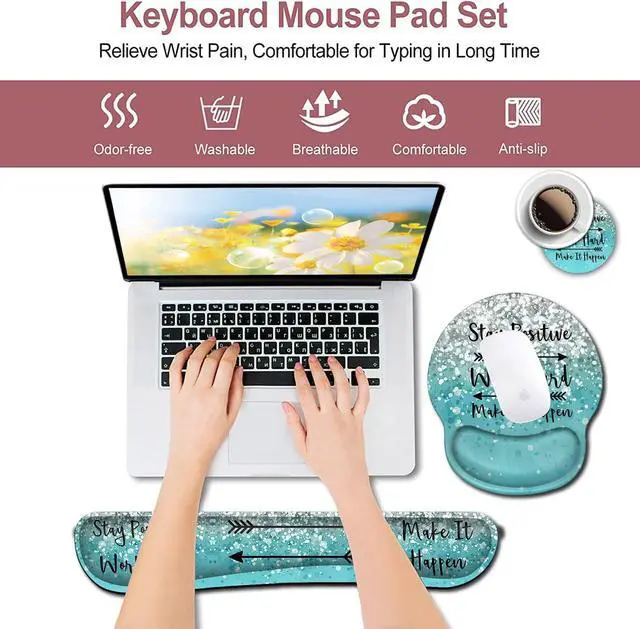 Mouse Pad with Wrist Support Ergonomic Gel Memory Foam Keyboard Wrist Rest Suitable for Office Typing Games Desktop Decoration Stay Positive Work Hard and Blue Glitter Graphic Office Accessories