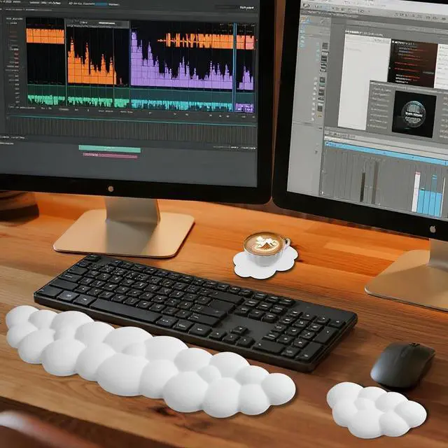 Savior Of Wrist PainErgonomic design and memory foam soft-touch breathable material provides soft support to reduce wrist and arm pain. helps treat and prevent carpal tunnel syndromeSoft And Comfortable aesthetic cute cloud-shape and provides wrist support incredibly relax and comfortable feeling. alleviates elbow and shoulder pressure and soothes muscle soreness. Stay Focused With Non-slip DesignNon-slip design these keyboard and wrist rests securely grip your desk ensuring no sliding or movement even during intense gaming sessions keep you stay focusEasy To Clean And Waterproofthe wrist rests are skin-friendly and waterproof simple wipe with damp cloth or towel keeps them fresh.