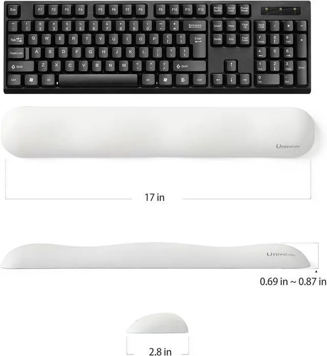 [Classical Shape and Size]: Wave keyboard wrist rest with a 17 x 2.8 inches with a 0.87 ~ 0.69 inch thick (ups and downs in wave) Wave mouse wrist rest with a 5.1 x 2.8 inches with a 0.87 ~ 0.65 inch thick (ups and downs in wave) fitting most laptop computer keyboards including gaming keyboards.