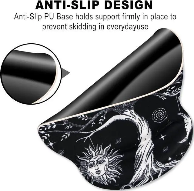 Anti-Slip Base: Our Ergonomic wrist support mouse pad applies with Semi-adhesive PU. It will provide a firmly grasp on desktop to prevent sliding or unwanted move keeping your mouse pad stay in place. You can concentrate your minds on work or in game.