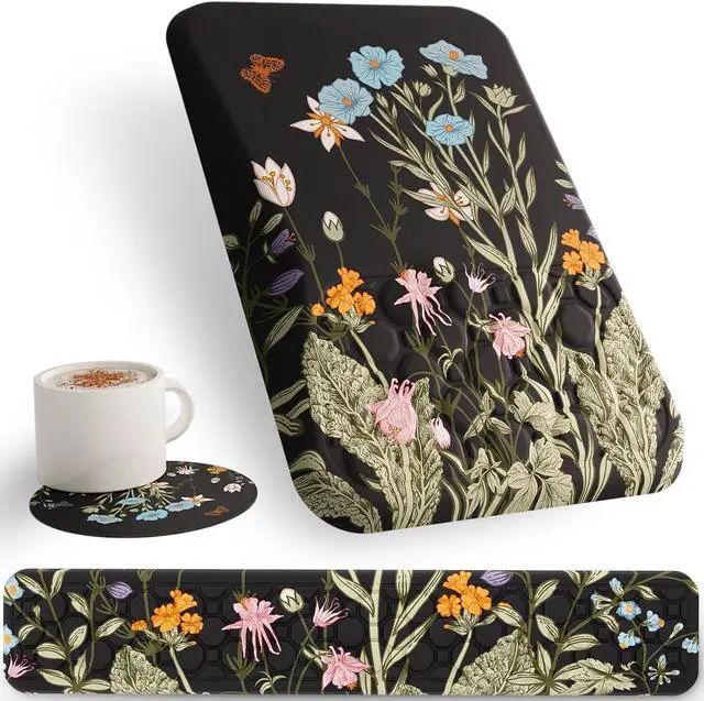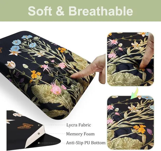 Premium MaterialsUnlike other gel alternatives it features 100% memory foam providing long-lasting support. The silky lycra fabric surface prevents pilling and is easy to clean with damp wipe ensuring a smooth and comfortable feel. 3-in-1 Ergonomic SupportMousepad with a 10.8 °-degree slope and a middle hump provides optimal wrist alignment and joint pressure relief for a comfortable work or gaming experience. This keyboard wrist rest support is great for long-time typing. Massage DesignThe massage bumps on the keyboard and mouse wrist rest promote healthy blood circulation which can help prevent stiffness and soreness in your hands and arms.