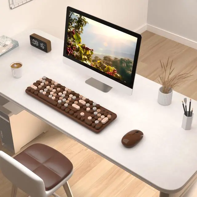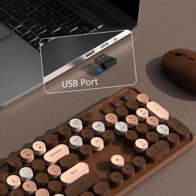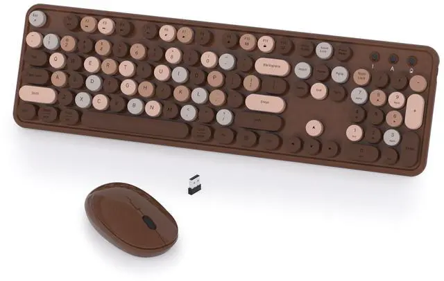 Colorful Wireless Keyboard and Mouse Combo, COVEVA 2.4GH z Wireless Retro Cute Round Keycaps Keyboard, 104 Keys Full-Sized Keyboard Mouse Set with Switch Button for PC Laptop Desktop (Brown Colorful)