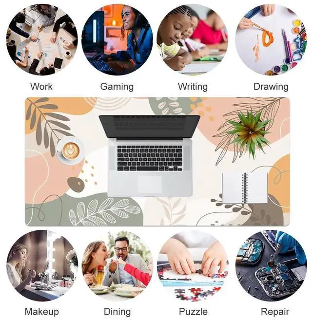 80×40cm (31.5×15.7 inch), this cute desk pad is large enough to accommodate your mouse, keyboard, computer, laptop, and other desk accessories. This large mouse pad provides plenty of room for home / office writting, drawing or gaming with extended arm movements. The desk organizer keeps your desktop organized and clean!