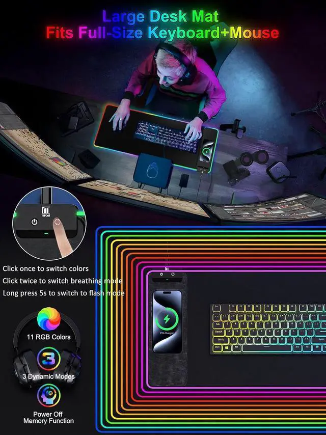 Smart Control: 15W Qi-Certified Fast Charging + 16.8M RGB Lighting + XXL Gaming Surface (30% faster charging than standard pads)Pro-Grade