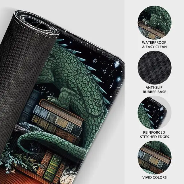 PREMIUM DESIGN: The desk mat features a mystical gothic library bookshelf scene design with intricate details including vintage books glowing candles skulls and a dragon against a dark atmospheric background. This large gaming mouse pad is not just a mouse pad but also a good companion to accompany you in work and study adding a touch of fun to your workspaceSPACIOUS