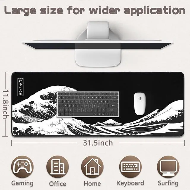 SIZE: This mouse pad large measures 31.5 x 11.8 x 0.12 inch (80 x 30 x 0.3 cm) the large mouse pad for desk is extra-large size not only protects your desktop effectively but also leaves plenty of room for you to work and gamingULTRA-SMOOTH