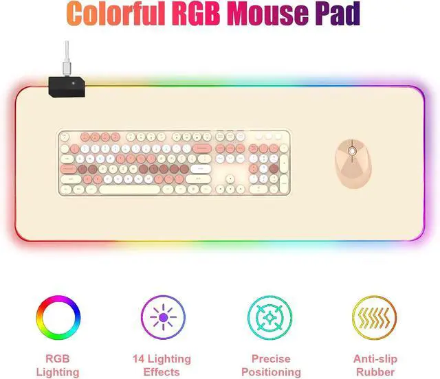 • RGB Large Gaming Mouse Pad Extended Mouse Pad with 14 Lighting Modes Superior Micro-Weave Cloth Non-Slip Base 800 x 300mm / 31.5 × 11.8 in (Milk Tea)