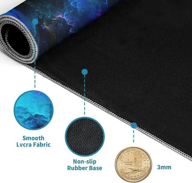 [HIGHLY DURABLE DESIGN]: Our Dazzling Galaxy mouse pad long with delicate and durable stitched edges which can effectively prevent fray and degum. It also enhances the aesthetic and lifespan of the mouse pad. You can use it easily.?