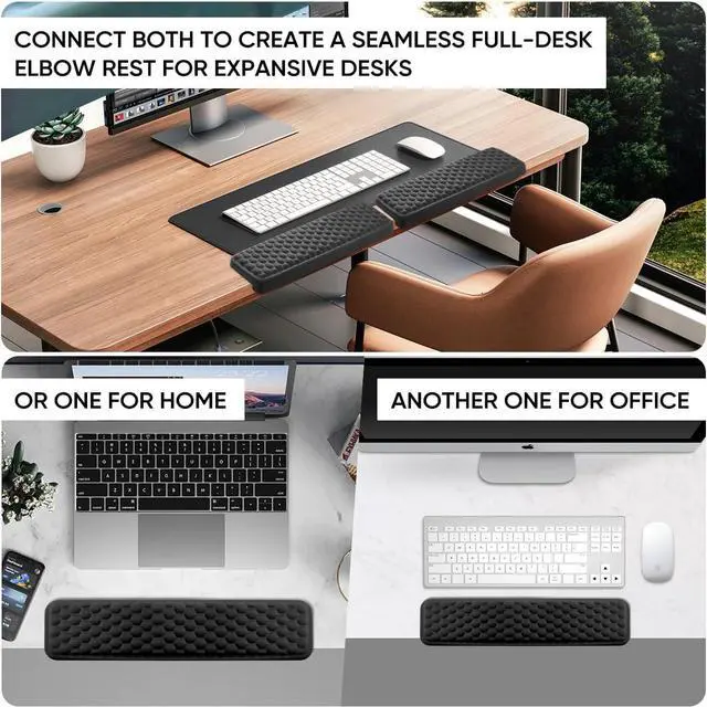 ? Versatile 2-in-1 ComfortOur desk elbow pad( 14.9 inch)is longer but that's the genius! Connect both to create a seamless full-desk elbow rest for expansive desks or use them separatelyone for home one for office. It's two purchases in one offering unparalleled flexibility and double the comfort!? Ergonomic L-Shaped Design? Hugs your desk edge perfectly delivering comfy arm and elbow support. Reduces pressure and discomfort during long workdays and actually helps relieve pain experience cloud-like cushioning that molds to your arms - no more sore elbows!?? Easy Clean & Built to LastThe smooth stain-resistant cloth surface is super simple to wipe clean and lasts through it all it is very suitable for office computer desktop study games.
