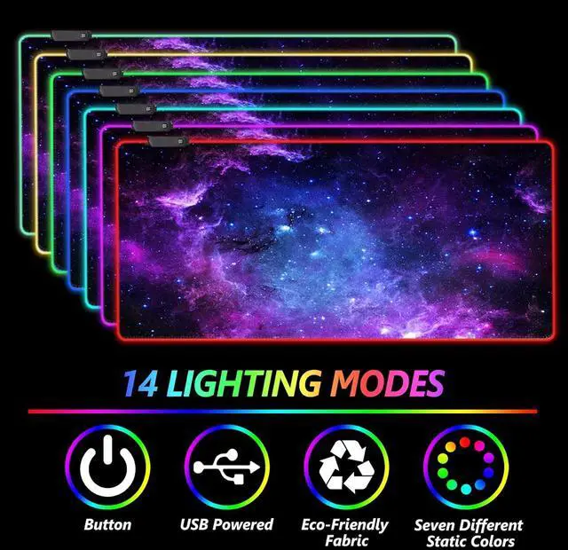 RGB light mode: The DINKY RGB mouse pad which provide a variety of colors offer 14 light modes. Features 7 static modes and 8 dynamic modes. Easily click the switch button to change color and choose the model you like. Also you can create a cool and colorful world of games on your desktop.??