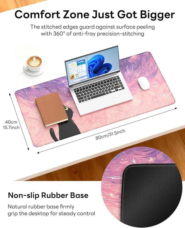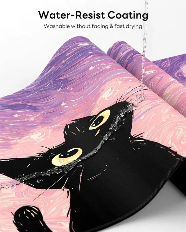 Clean: Made of rubber material and fabric surface bonding our mouse mat repels water & stains; withstands heat up to 85°C. Spills like coffee or crumbs wipe away easily with a cloth or wet wipe Does Not Fade And Can Be WashedVibrant Designs & Desk Decor: This XL mouse pad for desk offers a collection of anime cute and abstract art styles. It's a durable fade-resistant desk decoration that adds a personalized touch to your space