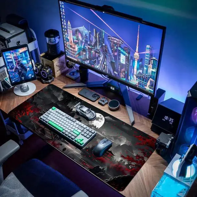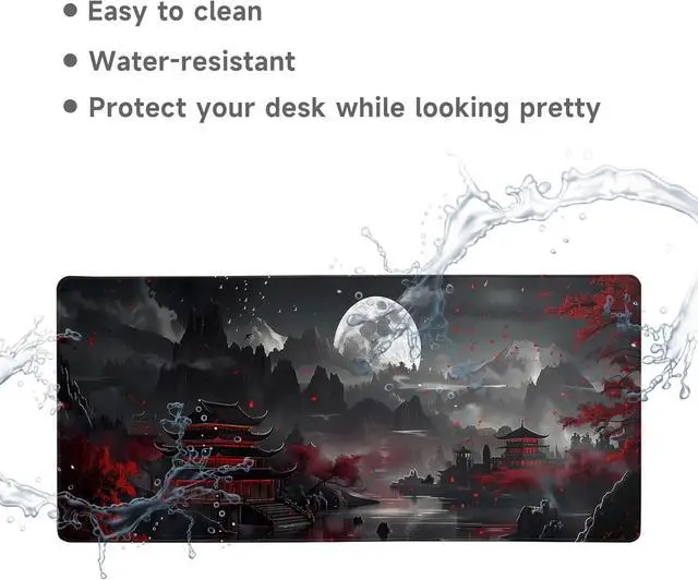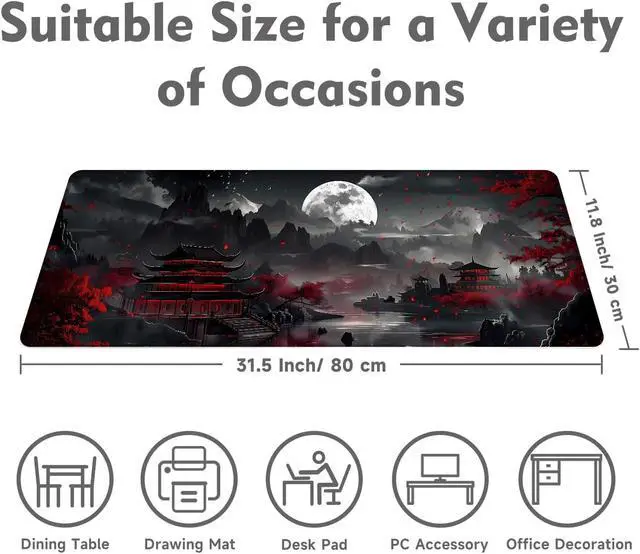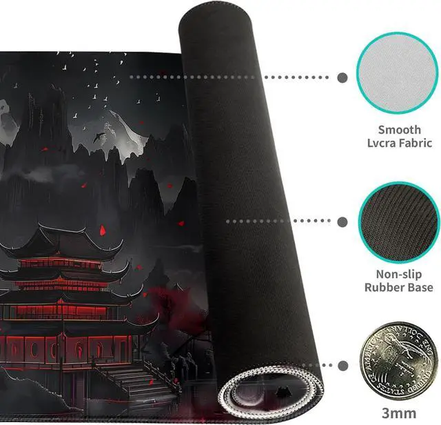 Extended Size: 31.5 X 11.8 Inches which is big enough to fit your full-sized keyboard mouse laptop or other item on the desk providing more space for professional gaming or office workMaterial: Large Mouse pad is made of a durable heat-resistant polyester fabric top. Very good material. Backed with a neoprene rubber non-slip backing keeps the mouse pad from sliding.. Ensure prolonged use without deformation and degummingUltra-smooth