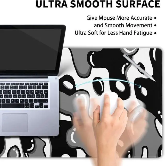 Backed with non-slip nature rubber base and stitched anti-fray edges provides strong grips between mat and desktops further providing a stable control. It is the perfect choice for studying working and gaming. Perfect Desktop ProtectorOur mouse pad black and white with smooth stitched edges which can effectively prevent fray and degum. Adopts superior printing technology enhances the aesthetic and lifespan of the mouse pad. The mousepad is good at preventing your desk from scratches stains spills heat scuffs and other accidental damage it is a great decor for your home table writing pad platform protection mat and office desk.
