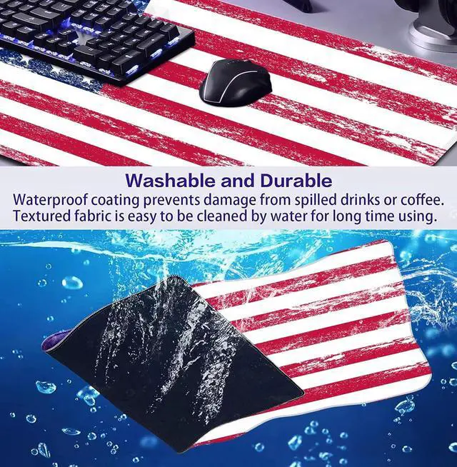 • American Flag XXL Extended Mouse Pad Laptop Pad Waterproof Non Slip Gaming Office and Home Stitching Edge Table Pad 35.4 x 15.7 x 0.12 Inches