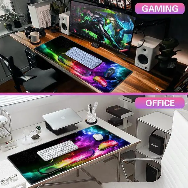 Whether these desk mat with wrist rest set is for study office game decoration or as a gift our non-slip desk mat set with wrist support is very suitable for you. Superior Control SurfaceLarge mouse pad for desk is made of micro-fiber woven material that allows your mouse to move easily on the mouse pad. The soft and smooth desk mat surface is super manipulative and provides an excellent balance between sliding and control greatly improving control precision and speed at work or play. Water-resist Coating and Stitched EdgesThe water resistant coating effectively prevents damage caused by splashing water or drinks you no longer have to worry about beverages or coffee seeping into the mouse pad hand sweat and dust are easier to clean you just need to clean with a wet towel very simple convenient and fast.