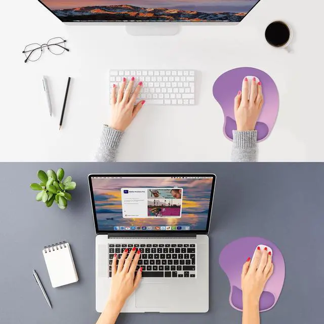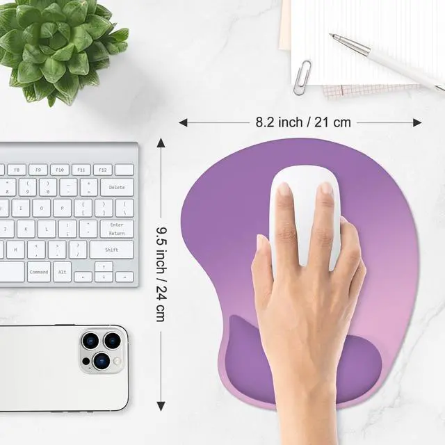 ITNRSIIET Ergonomic Mouse Pad, Cushioned Gel Wrist Rest, Non-Slip Base, Smooth Surface, Cute Multi-Color, 9.5 x 8.2 in, Purple Pink Gradient