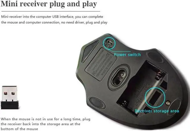 VAREQOY Computer Game Mice 1600DPI Gaming Mouse 2.4GHz Wireless Mouse USB Receiver Wireless Optical Mouse