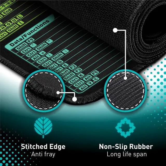 ? LARGE AND PERFECT SIZE. Pixiecube desk pad measures 800x300x2mm ( 31.5 x 11.8 x 0.09 inches) covering the area for a laptop and mouse while providing plenty of room for work or gaming.? EXTENSIVE COMPILATION of commonly used shortcut keys for Microsoft Excel spreadsheet. Included useful tricks and formulas making sure you would know your sheet!? WELL CATEGORIZED - orderly organized in an easy-to-find arrangement grouped into frequently used operations such as navigation selection formatting data/functions etc.? FUNCTIONAL& ENJOYABLE - Features 10 desk exercise diagrams perfect for a quick break whenever you're busy crunching data!? FUN GIFT - Features the joke Excel-lent at my job! I know my sheet.
