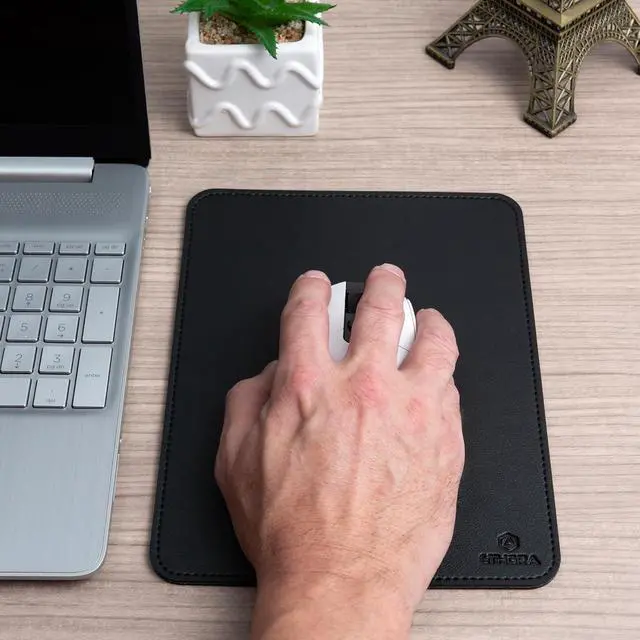 Elegant & Portable Design: Stylish faux leather mouse pad with stitched edges and a non-slip rubber base. Lightweight and easy to carry it adds a clean modern look to any workspace.