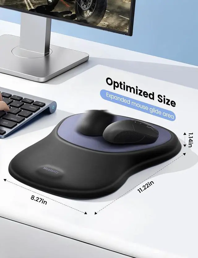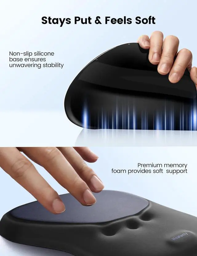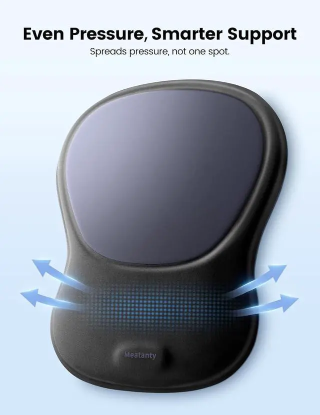 No wobbling no slidingjust a stable and reliable foundation that helps you stay in the zone without any interruptionsSink in Cloud-Like SoftnessWrapped in a silky-smooth surface and filled with plush memory foam Meatanty desk mouse pad feels like a quiet moment of comfort in your busy day. Every touch will let your wrist rest in cloud-like softness so even your longest hours feel a little lighter.