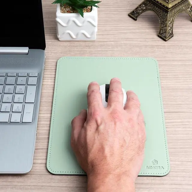 Elegant & Portable Design: Stylish faux leather mouse pad with stitched edges and a non-slip rubber base. Lightweight and easy to carry it adds a clean modern look to any workspace.
