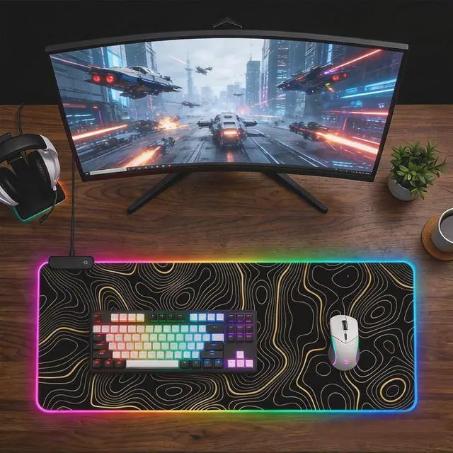 12 RGB Lighting Modes for Ultimate Customization Transform your gaming setup with 12 dynamic RGB lighting modes! switch modes with a single press or turn lights on/off by holding for 3 seconds. The power-off memory saves your favorite settings automatically. XXL Size for Maximum Comfort ( 31.5 x 11.8 ) This massive gaming surface accommodates your full battle station - keyboard mouse and notebook. The premium Type-C connection ensures stable power delivery to RGB lights without occupying valuable USB-A ports perfect for modern gaming setups. Next-Gen Plug & Play Convenience Featuring universal Type-C connectivity for instant compatibility with PCs laptops and even mobile devices.