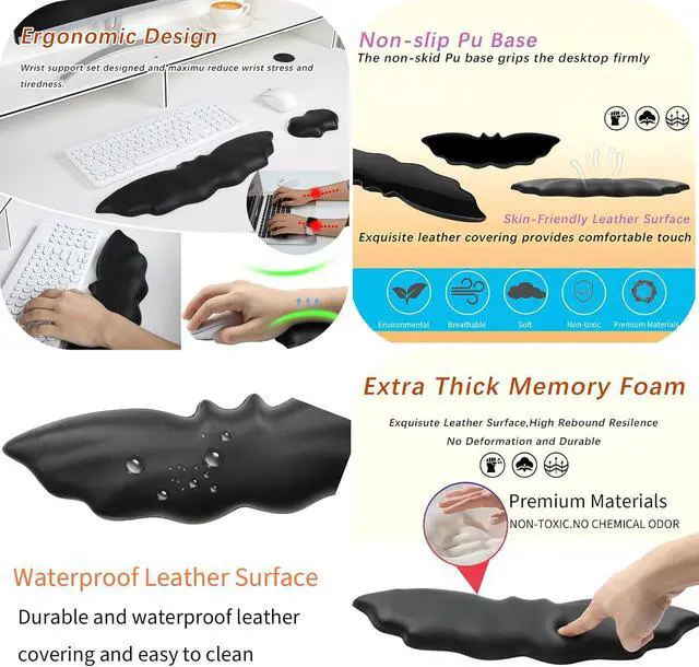 Breathable Leather Surface: bat-shape keyboard wrist rest is made of water-resistant and sweat-proof vegan leather easy to clean long size to fit most keyboardsthis soft wrist pad fits both standard and mechanical keyboardsWrist Rest