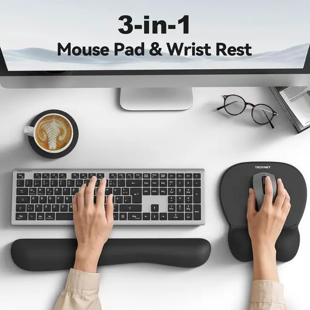 Move your mouse freely without worrying about pad movement ensuring stable and uninterrupted useErgonomic DesignThe computer mouse pad and wrist rest for computer keyboard provide comfortable contact and effective support for your wrists. They deliver a soothing relaxed feel during typing to help prevent wrist or hand strainPractical Mouse Pad SetThe keyboard and mouse pad set includes 1 gel mousepad 1 memory foam wrist pad for keyboard and 1 matching coaster. Perfect for computer users needing comfort during office work or gamingThe Perfect Gift ChoiceOur versatile carpal tunnel mouse pad and keyboard pad set makes a thoughtful and practical gift for family friends or colleagues ideal for birthdays Father's Day Christmas and other occasions.