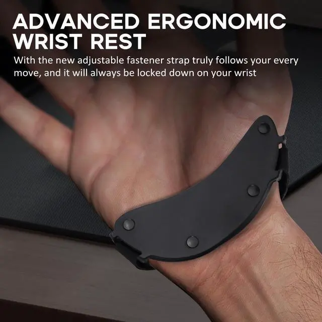 ? Follows Your Every MoveWith the new adjustable fastener strap truly follows your every move and it will always be locked down on your wrist the ideal contoured ergonomic shape perfectly fit the structure of your right wrist and the ABS base dont constrain your wrist motion and enable it to seamlessly glide together with the hand? Removable & Comfortable StrapThe material of this strap is very comfortable and will not cause scratches or allergies to your skin. And it is removable? Savior of Wrist PainThe ergonomic structure conform to your wrist for maximum comfort and support it reduces wrist irritation and wrist pain helps treat and prevent carpal tunnel syndrome? Designed with Experts Feeling stiffness or pain from using the computer wrist for a long time are problems many gamers or worker.