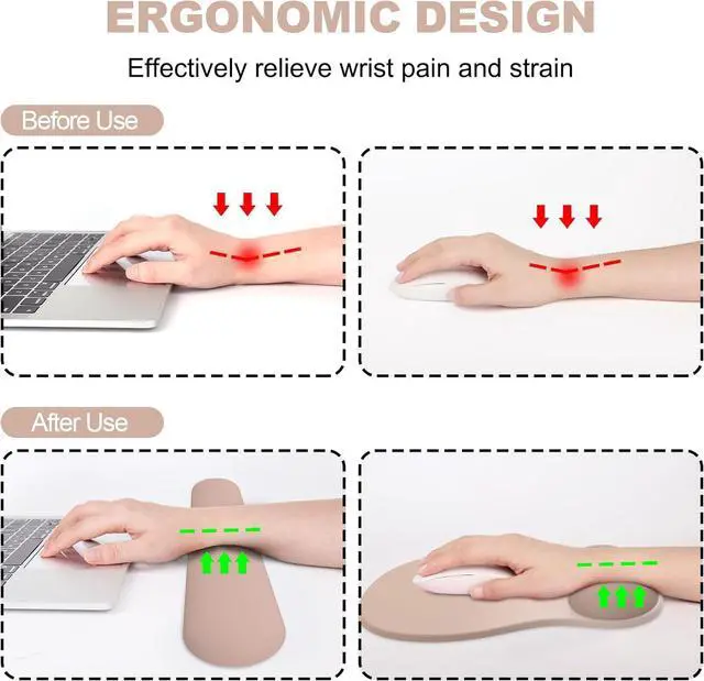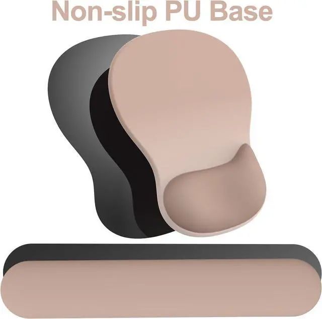 Material: Wrist rest for mouse is filled with ultra soft gel offers plush support to alleviate wrist pressure and pain. Keyboard pad features memory foam lining good resilience not easily deformedAnti-Slip