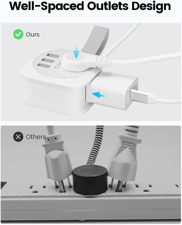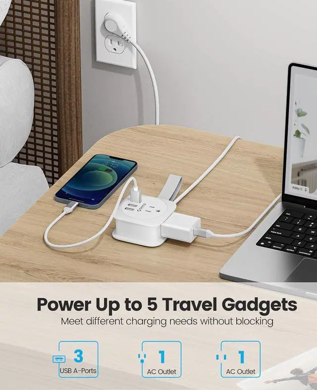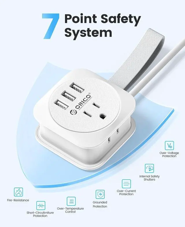 Full Protection Guaranteed:The flat plug travel power strip is certified by FCC and UL Test Report, features short circuit, over heat, over current and over voltage protection.