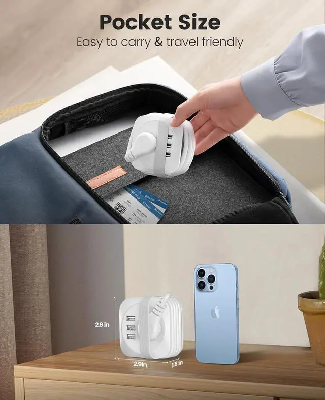 Portable Travel Essentials:3.7ft retractable power cord which makes it easy to storage, small size and lightweigh.