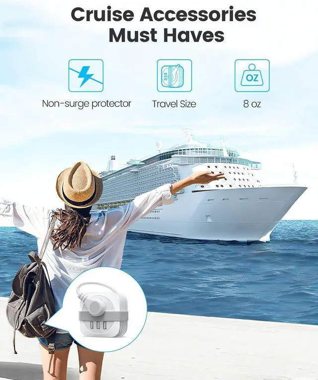 Cruise Ship Essentials:The small travel power strip is essential for a cruise trip as cabins have limited outlets.