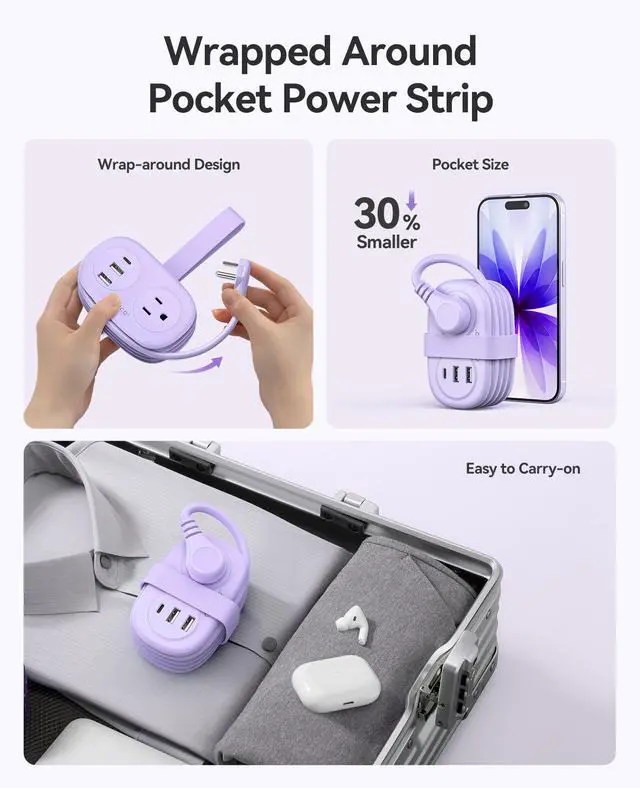 Full Protection GuaranteedThe flat plug travel power strip is certified by FCC and UL Test Report, features short circuit, over heat, over current and over voltage protection. Made of Fire-resistant PC shell and provides wide aspect protection, Making it more durable and last longer.