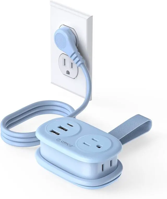Pocket Travel Power Strip:ORICO power strip is smaller than a mobile phone and features a wrap-around design that can fit into any package suitcase, it doesn't take up much space.