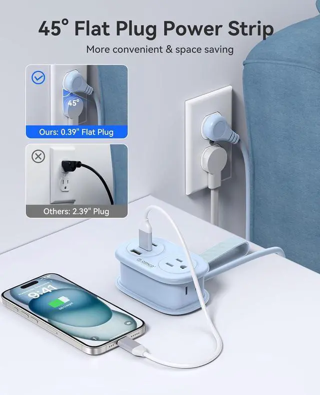 45° Flat Plug Power Strip:Many hotel sockets are installed behind the bed, and the bed needs to be moved to use it.